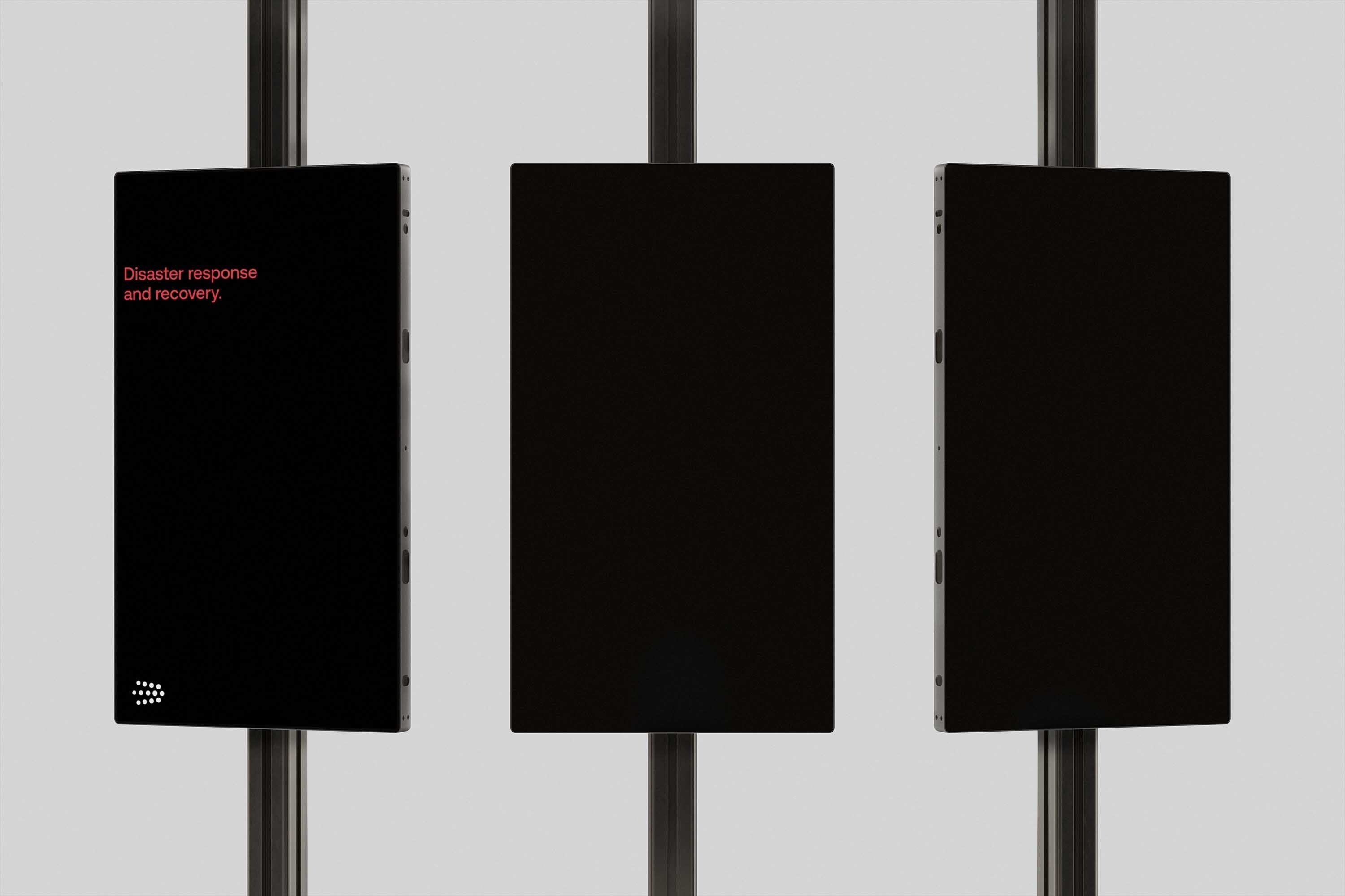 The visual identity draws from the same core principle that powers New Orbit’s technology: ion propulsion. The logo references the movement of charged particles that propel satellites through orbit, while the custom slab semi-mono logotype nods to the language of engineering and technical schematics. A vibrant red anchors the palette, echoing the color of ion propulsion at peak performance—bringing energy and intensity to an otherwise cool, technical system.