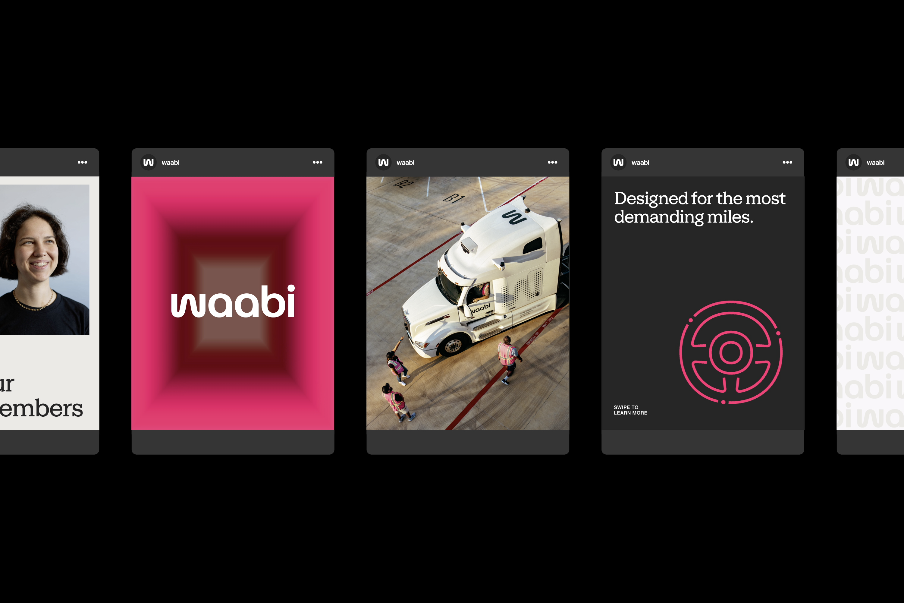 Waabi had made enormous strides: an industry-leading driver built on AI-first simulation, a rapidly expanding commercial footprint, and growing partnerships with Volvo, Nvidia, and Uber Freight. But the existing brand looked and sounded like a typical AV company. It undersold their scientific depth, their contrarian approach, and the broader impact of their technology. The story needed to shift from “self-driving trucks” to “a safer, more scalable future for logistics and mobility.”