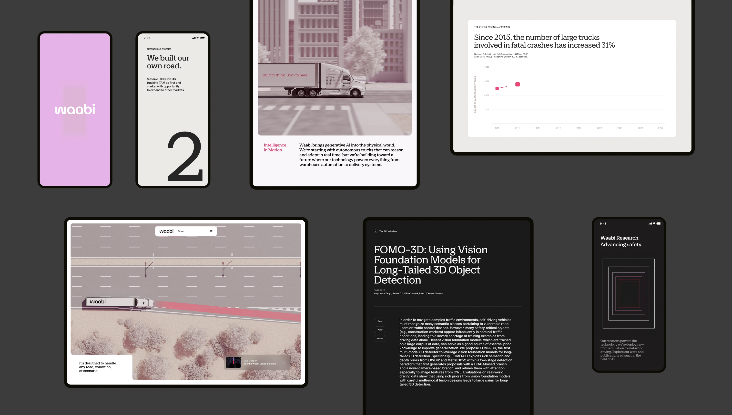 Waabi is one of the most technically advanced companies in autonomous driving, yet their brand and digital presence weren’t reflecting the scale of their progress. Their breakthrough approach to autonomous trucking, powered by next-generation generative AI, had accelerated far ahead of the story they were telling. Waabi came to us to help articulate a clearer point of view, sharpen their differentiation, and build a brand and website that finally matched the ambition of their technology.
