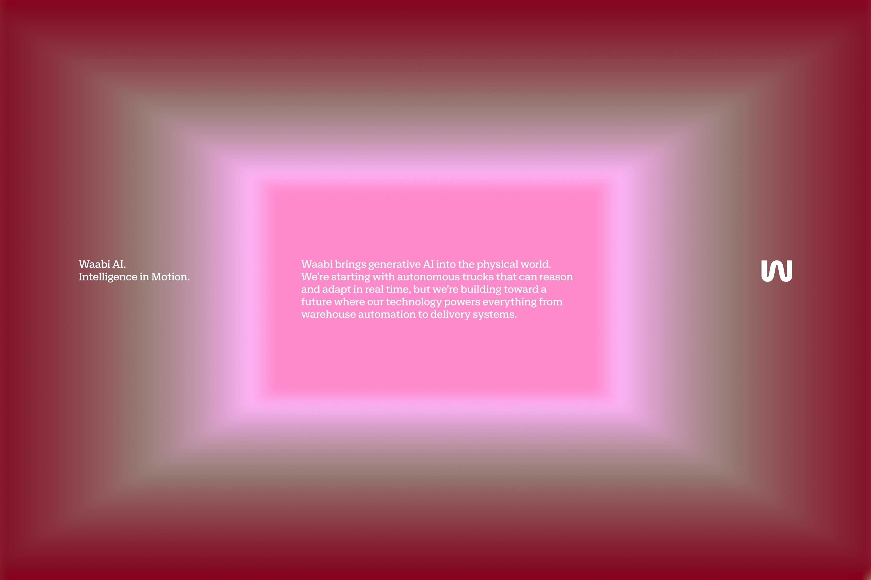 A distinctive palette anchored by a vibrant fuchsia pink stands out in the AV category and brings a human warmth and optimism that counterbalances the technical nature of the work. A complementary “light tunnel” gradient graphic adds depth and movement, serving as a core signature that expresses Waabi’s intelligence and constant forward momentum through the world.